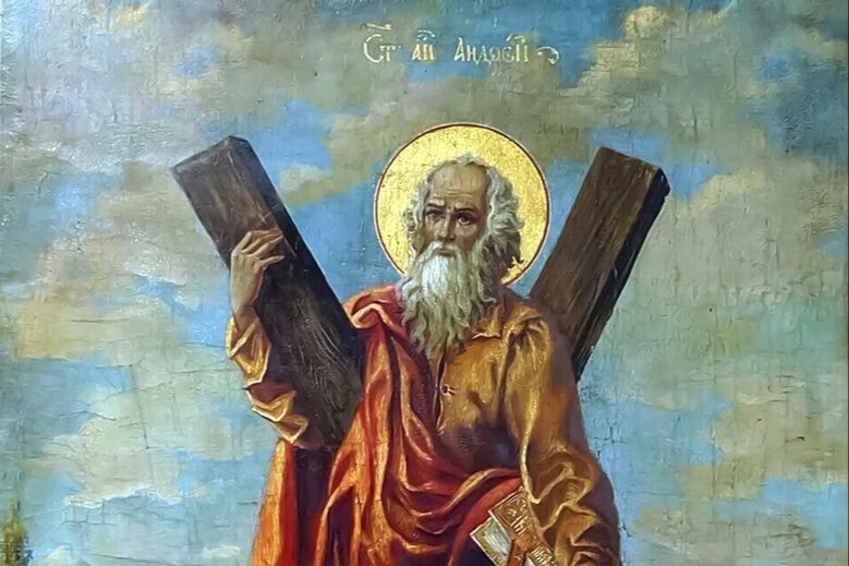 Святой апостол Андрей Первозванный, один из двенадцати апостолов (греч.—посланник), избранных Самим Господом для евангельской проповеди. Родился в городе Вифсаиде в Галилее, впоследствии жил вместе со своим братом Симоном (Петром) в Капернауме, на берегу Геннисаретского озера, доставляя себе средства к существованию ловлей рыбы.