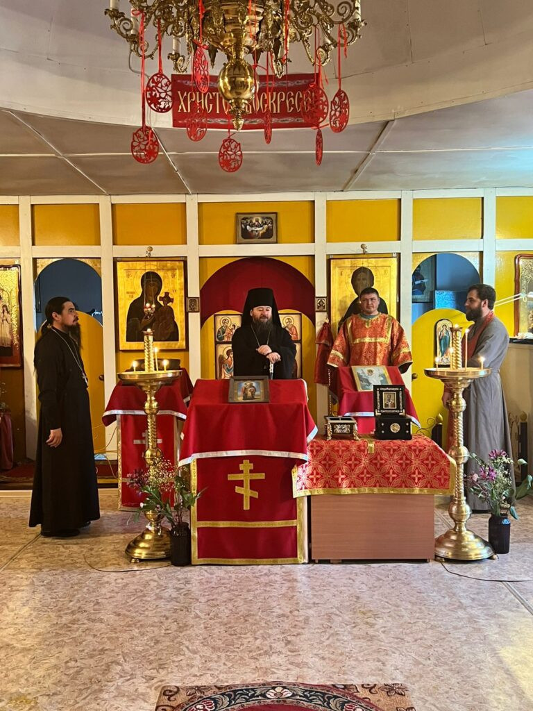 Вечером 21 мая 2025 года, в канун дня перенесения мощей святителя и чудотворца Николая из Мир Ликийских в Бар, епископ Нерчинский и Краснокаменский Макарий совершил всенощное бдение в храме в честь апостола Андрея Первозванного пгт. Новая Чара Каларского района.