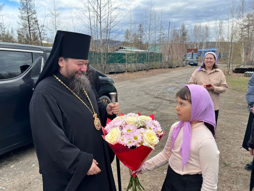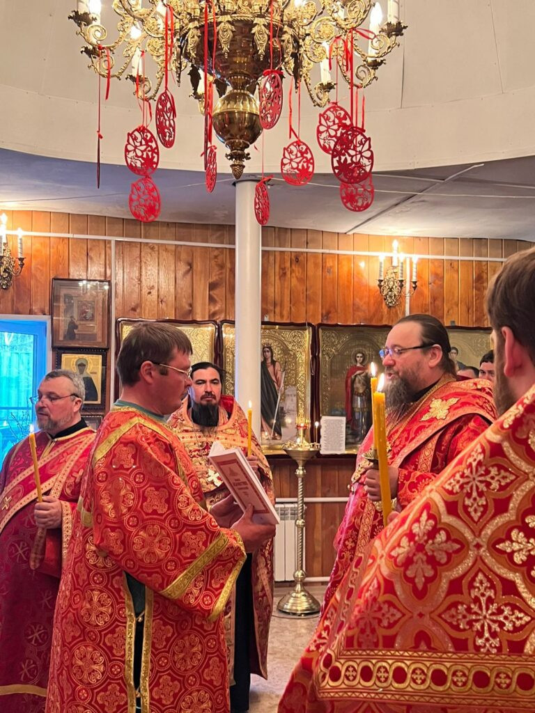 Его Преосвященству сослужили: ключарь кафедрального собора Воскресения Христова г. Нерчинска иерей Роман Пичуев; клирик Белгородской епархии иерей Даниил Тарасовский.